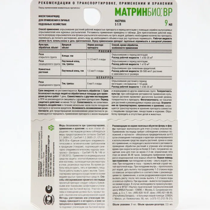 Средство от комплекса вредителей МатриБио, BP, для комнатных растений, 9 мл — Характеристики