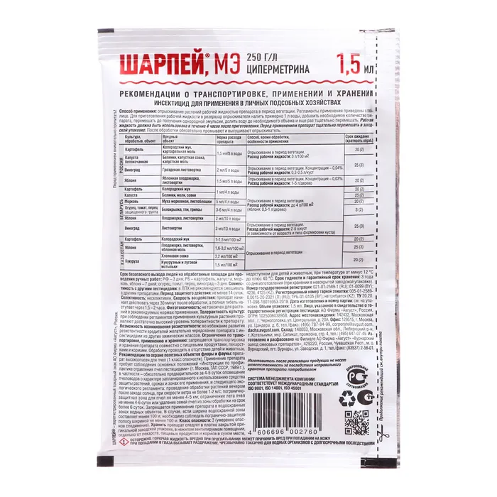 Средство от комплекса вредителей Шарпей ампула в пак. 1,5 мл — Характеристики