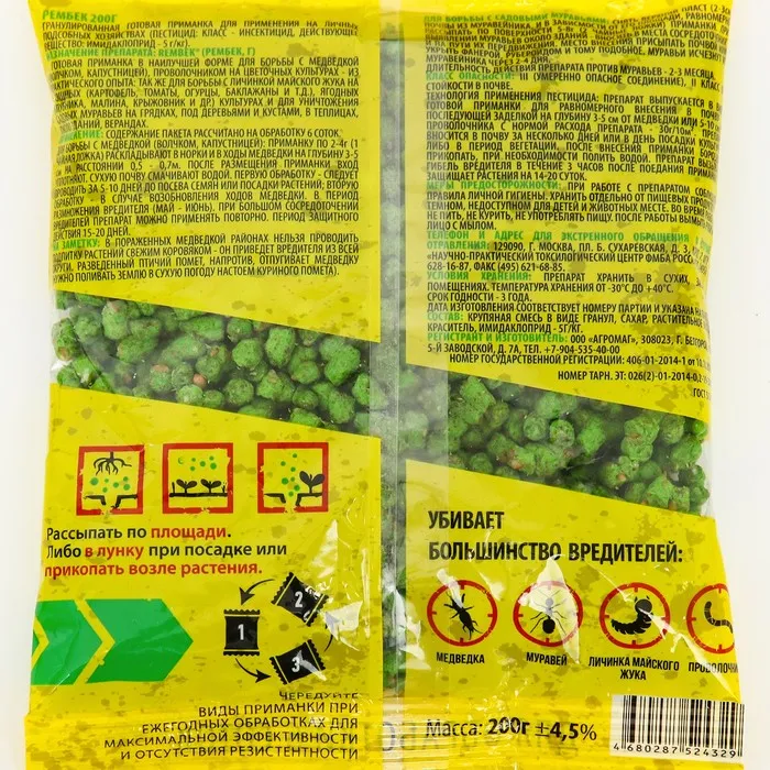 Средство от медведки и проволочника "Рембек", экструдированная гранула, 200 г — Характеристики
