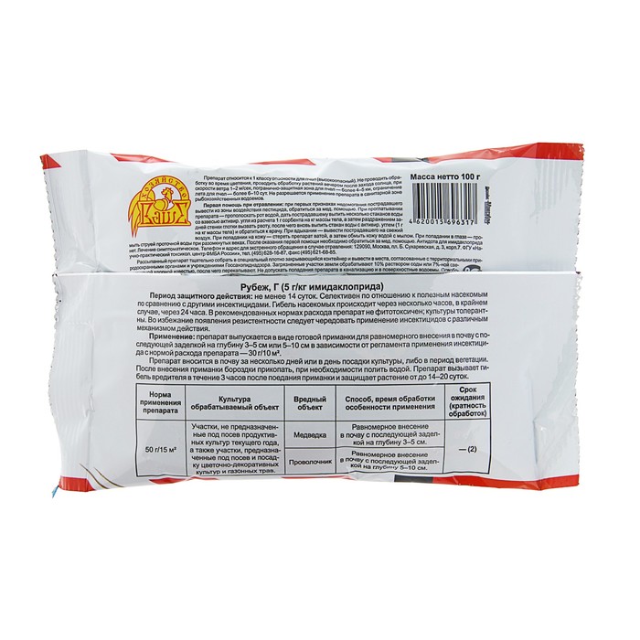 Средство от медведки Рубеж гранулы, 100 г — Характеристики