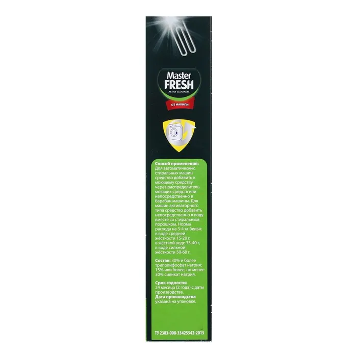 Эффективно удаляет накипь и продлевает срок службы вашей стиральной машины. Специально разработанная формула смягчает воду и защищает внутренние детали стиральной машины от образования известковых отложений. Регулярное использование средства продлит срок службы стиральной машины, уменьшит расход моющих средств и электроэнергии. Быстро растворяется в воде и не оставляет следов на белье и одежде. Средство от накипи связывает соли жёсткости в воде и не позволяет им оседать на тэне, а также улучшает качество стирки порошка, порошку не нужно "бороться" с жёсткостью воды, он сразу работает над пятнами и грязью. Можно использовать со всеми типами белья, включая цветное. Можно использовать как со стиральным порошком, так и с жидкими моющими средствами.