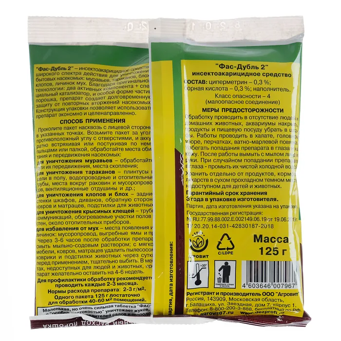 Средство от насекомых "Фас-дубль 2", 125 г — Характеристики