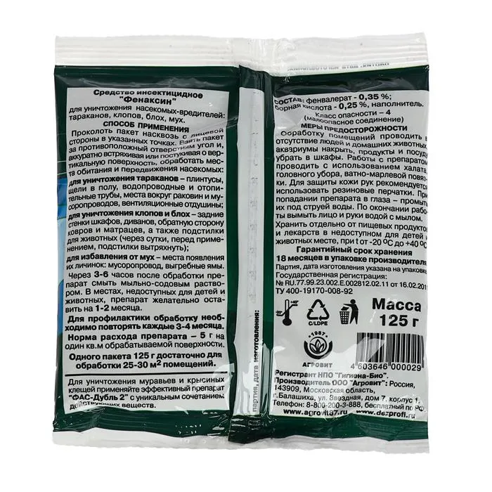Средство от насекомых "Фенаксин", 125 г — Характеристики