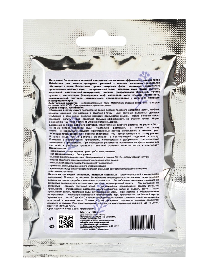 Средство от насекомых и вредителей «Метаризин», 50 г — Характеристики