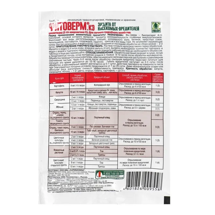 Средство от насекомых-вредителей "", Грин Бэлт", Фитоверм", ампула, 4 мл — Характеристики