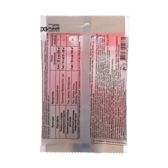 от комплекса вредителей (тли, трипса, цикадки, клопов, белокрылки и др.) на цветочных, в том числе горшечных растениях.