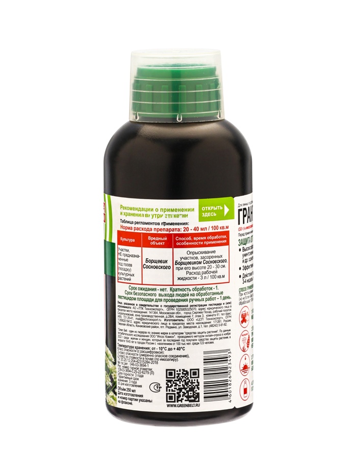 Средство от сорняков «Грант от борщевика», 250 мл, «ГРИН БЭЛТ» — Характеристики