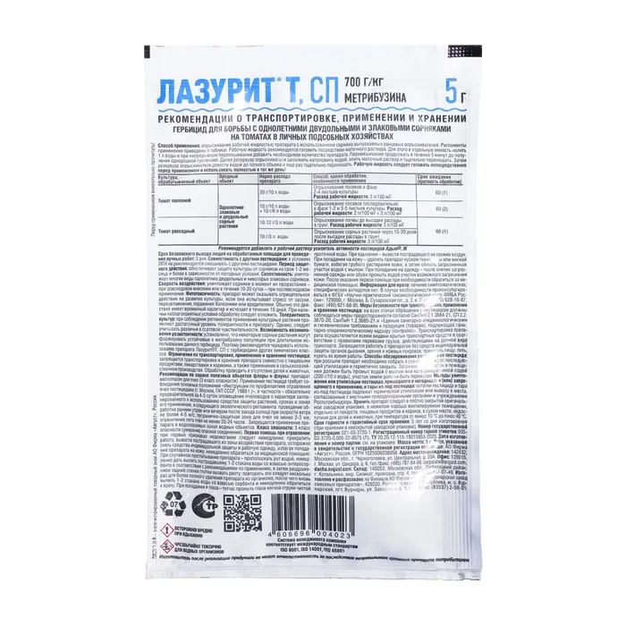 Средство от сорняков избирательного действия Лазурит, 5 г — Характеристики