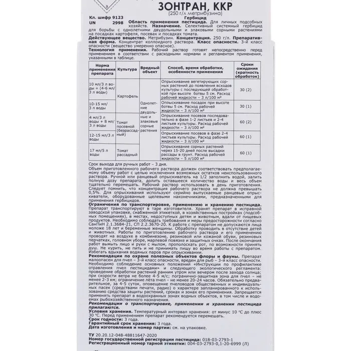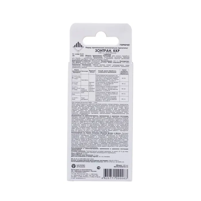Системный гербицид в инновационной формуляции для борьбы с широким спектром двудольных и злаковых сорняков на картофеле, томатах, пшеницы озимой, сои, нута.