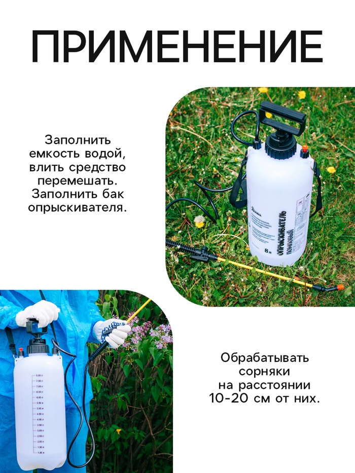 Эффективное средство сплошного уничтожения сорняков, представленное в форме жидкости объемом 1 литр. Этот препарат разработан специально для борьбы с нежелательными растениями на вашем участке.Он подходит для борьбы с различными видами сорняков, включая трудноликвидируемые, такие как одуванчики и полынь. Благодаря своей формуле, препарат быстро и эффективно уничтожает корни растений, что предотвращает их повторное появление.Легок в использовании. Для обработки участка достаточно разбавить препарат в соответствии с инструкцией и нанести его на поверхность посредством опрыскивателя или ручного распылителя. Препарат не оставляет следов на поверхности и не наносит вреда окружающей среде.При использовании необходимо соблюдать меры предосторожности. Препарат содержит активные компоненты, которые могут вызвать раздражение кожи и глаз. Поэтому, перед началом работы, рекомендуется надеть защитные перчатки и очки.