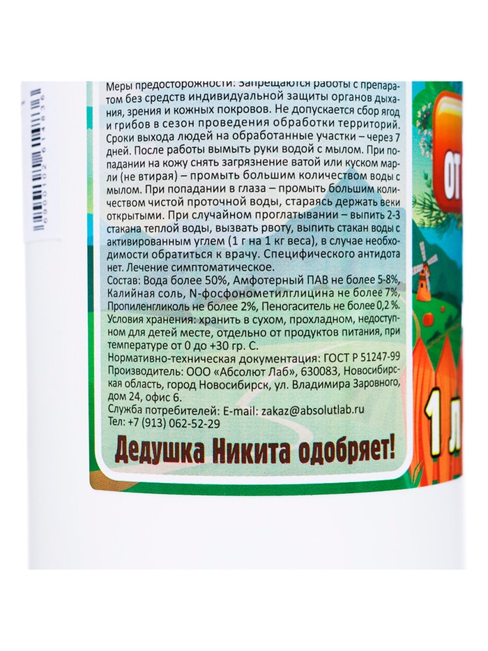 Средство от Сорняков «Рецепты дедушки Никиты», гербицид сплошного действия, 1 л — Характеристики