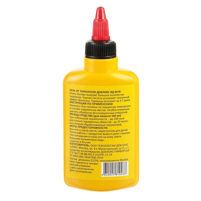 Средство от тараканов Дохлокс «Сгинь» №76, гель, борный, усиленный, флакон, 100 мл — Характеристики