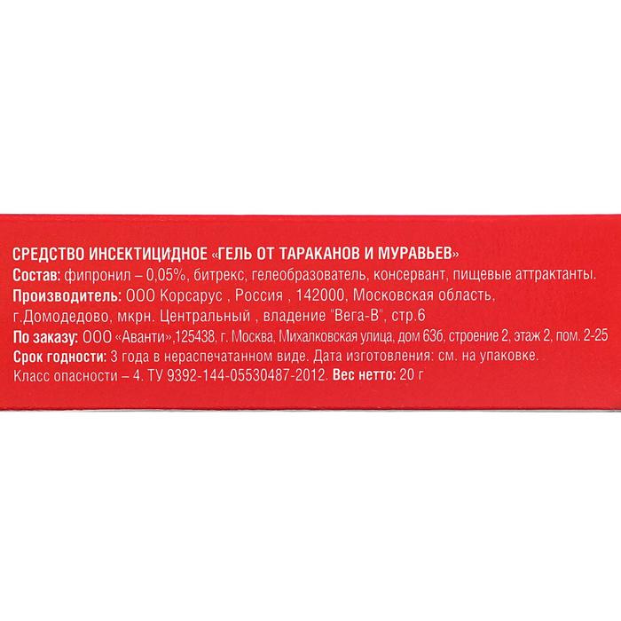 Средство от тараканов и муравьев «Бдительный Страж», гель, 20 г — Характеристики