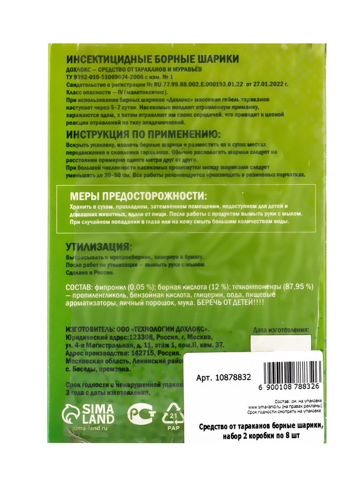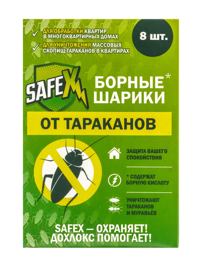 Средство от тараканов SAFEX, борные шарики, набор, 2 коробки по 8 шт. — Характеристики