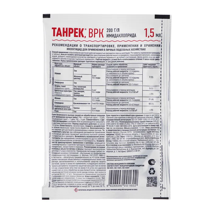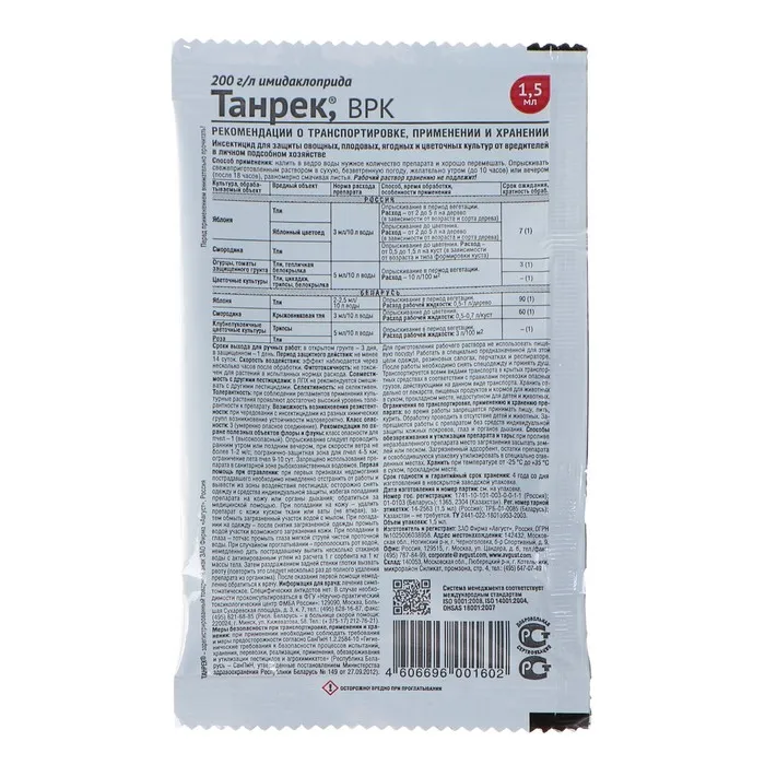 системно воздействует на колорадского жука (уничтожает насекомых, как при непосредственном контакте, так и при поедании насекомым обработанного растения);