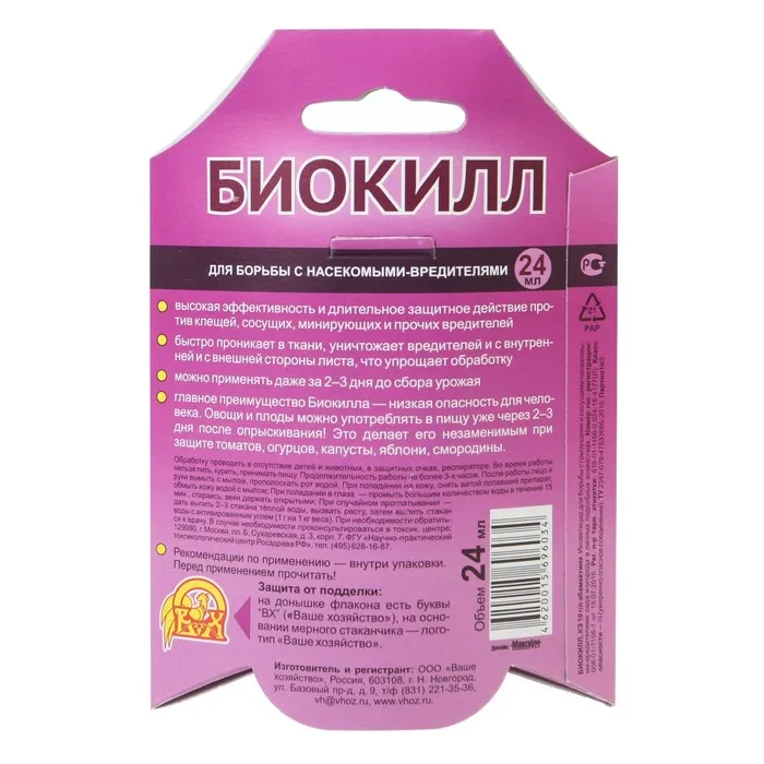 «Биокилл» — биологический пестицид для защиты растений от почти двух десятков распространенных вредителей сада и огорода. Уникален тем, что препарат можно применять, когда до сбора урожая совсем мало времени. Срок ожидания всего 3-е суток, для сравнения любой инсектицид имеет срок ожидания не менее 20 дней.
