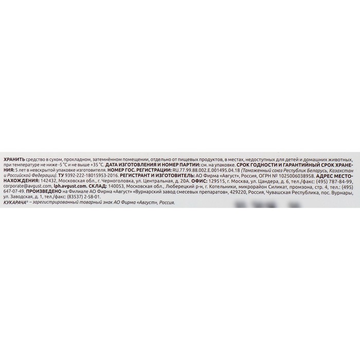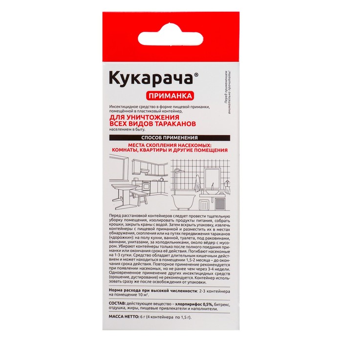 Средство от всех видов тараканов "Кукарача" приманка, 4 шт х 1,5 г — Характеристики