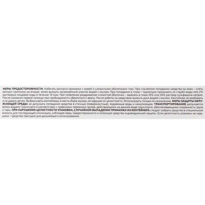 Способ применения: разместить контейнеры с пищевой приманкой в местах обнаружения, скопления, путях передвижения тараканов. На полу кухни, ванной, туалета, под раковинами, ваннами, унитазами, за холодильником, около вёдер с мусором.