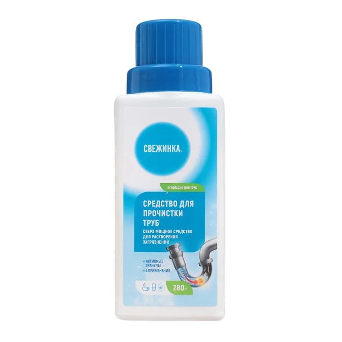 Сверх мощное средство. Для растворения загрязнений в канализационных трубах и устранения неприятных запахов в трубах ванн и раковин. Растворяет волосы, остатки пищи, жир, бумагу и другие загрязнения. Действует быстро и эффективно, уничтожает микробы.