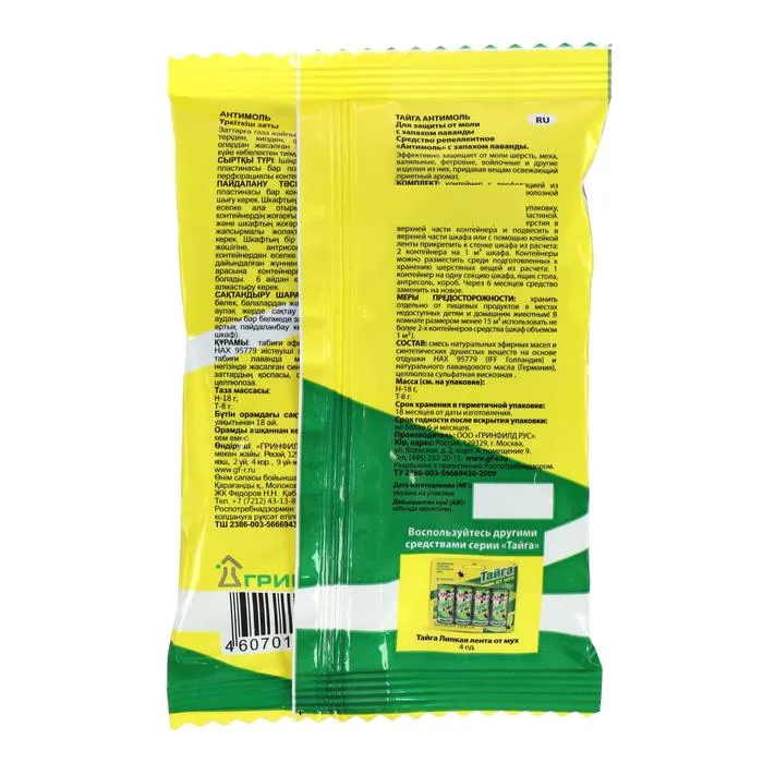 Средство репеллентное от моли "Тайга" Антимоль, с запахом лаванды, 1 шт — Характеристики