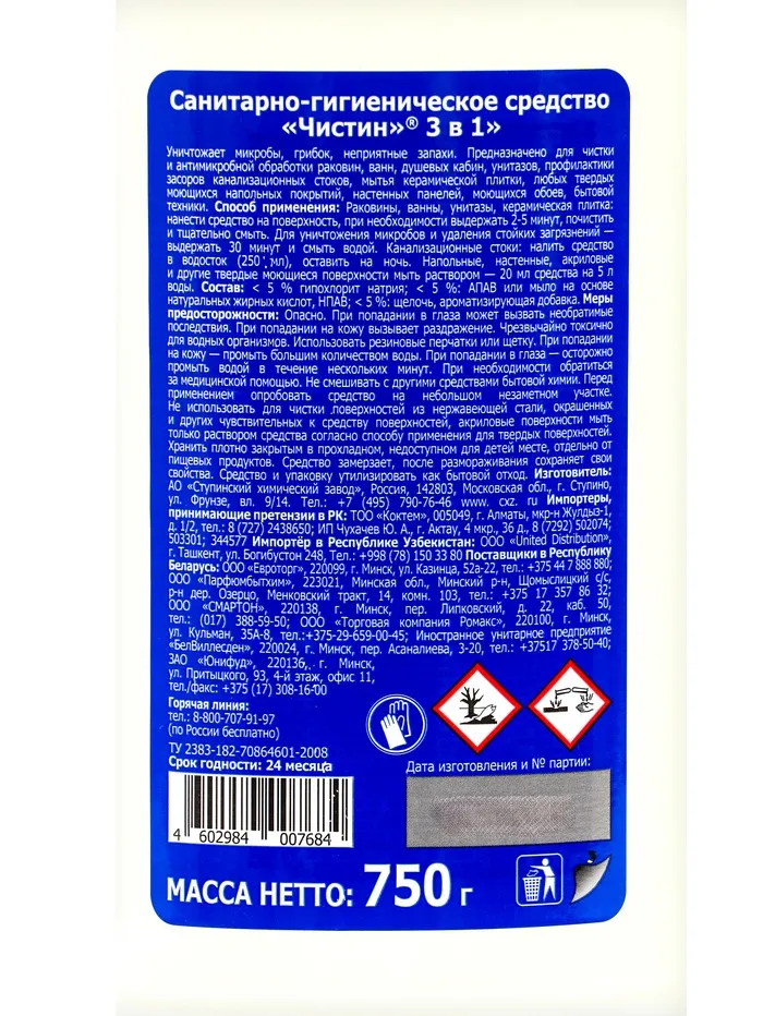 Средство санитарно-гигиеническое, "Чистин", 3 в 1, 750 мл — Характеристики