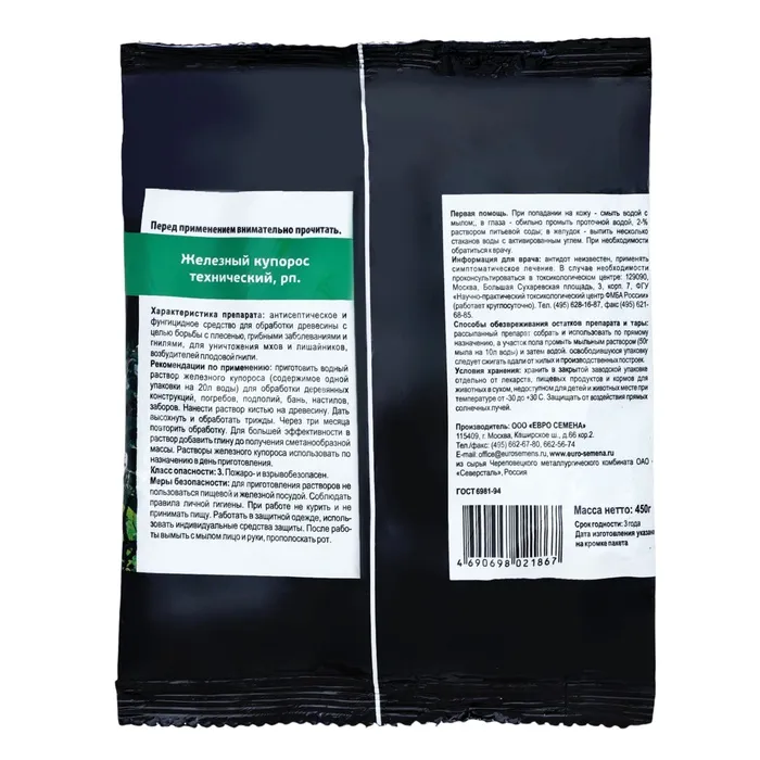 Железный купорос — фунгицид, предназначенный для борьбы с грибковыми заболеваниями. Используют только свежий раствор, приготовленный в стеклянной или пластмассовой посуде.