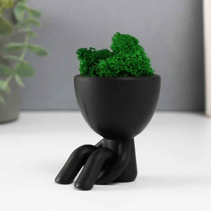 Стабилизированный мох в кашпо бетонном «Мистер Грин в ожидании», чёрный, 5.5×7×7 см — Характеристики
