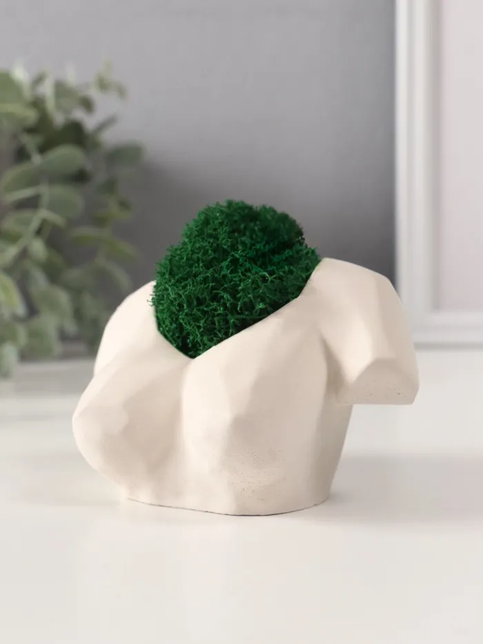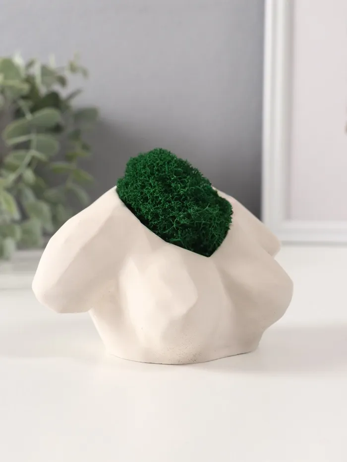 Стабилизированный мох в кашпо из бетона «Бюст», 11×7×6.5 см, белый — Характеристики