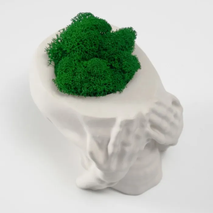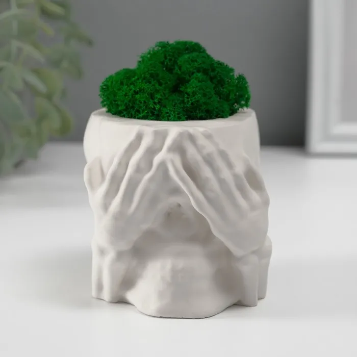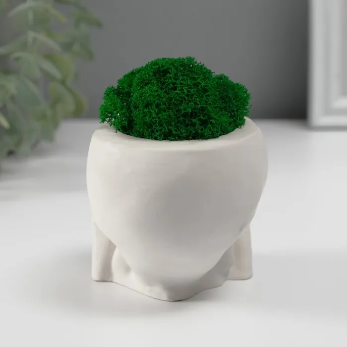 Стабилизированный мох в кашпо из бетона «Череп Прятки», 7×10 см, белый — Характеристики