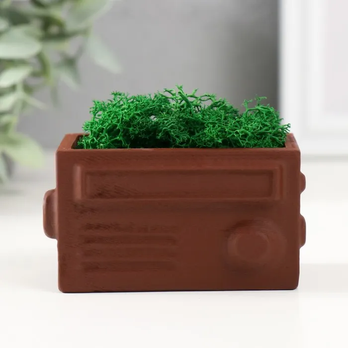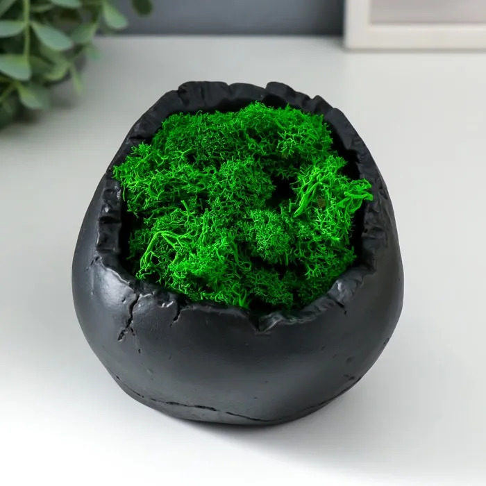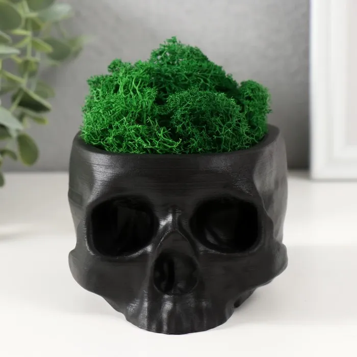 Стабилизированный мох в кашпо из бетона «Череп», высота 10 см, чёрное — Характеристики