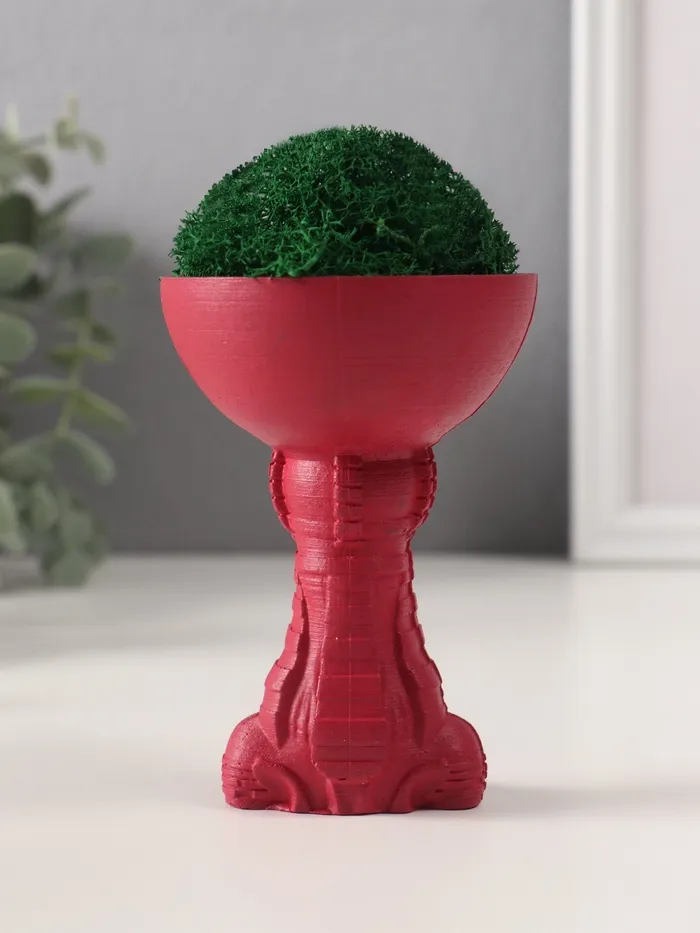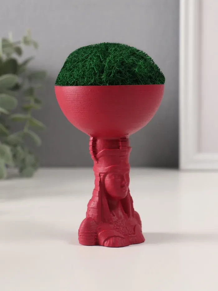 Стабилизированный мох в кашпо из бетона «Египтянка», высота 10 см, диаметр 7 см, винный — Характеристики