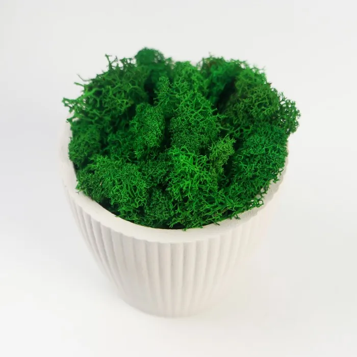 Фигурная форма кашпо напоминает то ли архитектурный макет, то ли абстрактную скульптуру – каждый увидит в ней что-то своё. А мох, не требующий полива и особого ухода, сохраняет свежесть годами, делая этот объект воплощением «ленивого» озеленения с безупречным вкусом.