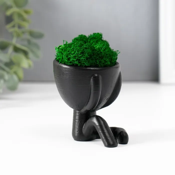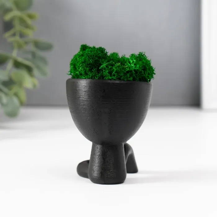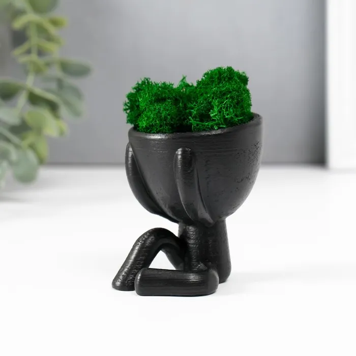 Стабилизированный мох в кашпо из бетона «Мистер Грин», 5.5×6.5×6.5 см, чёрный — Характеристики