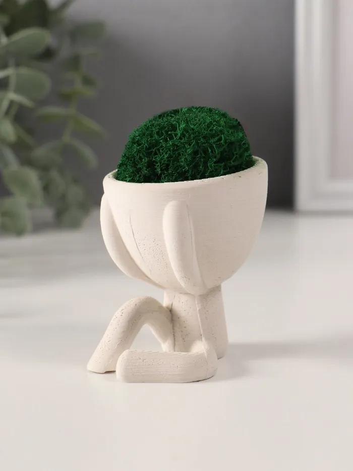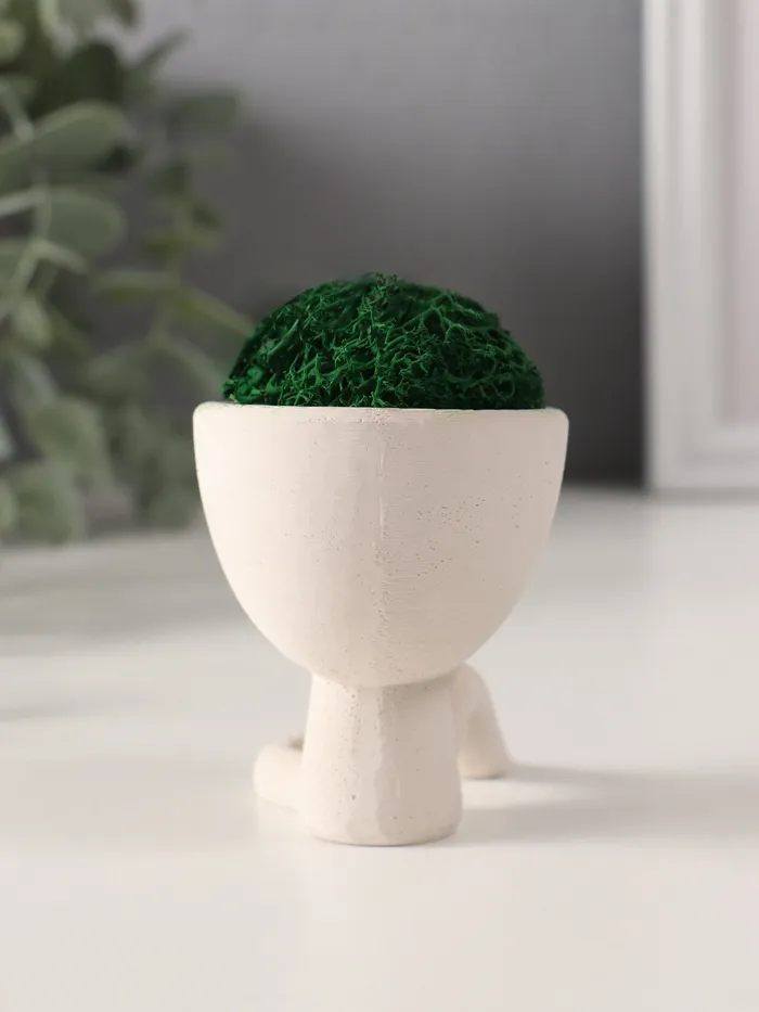 Стабилизированный мох в кашпо из бетона «Мистер Грин Мидзару», мини, 5.5×6.5×6.5 см, белый — Характеристики