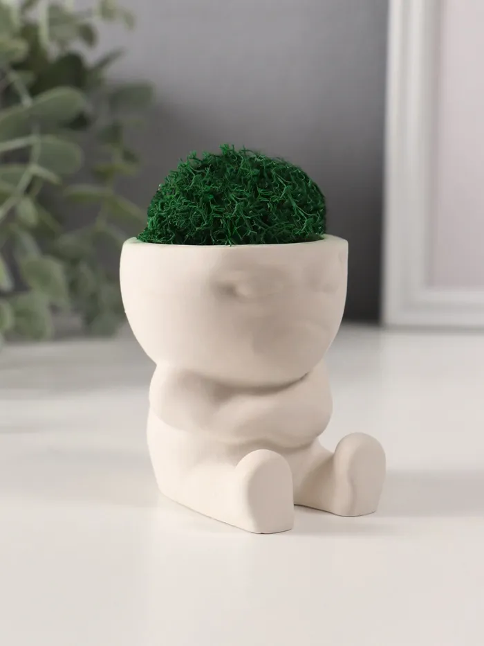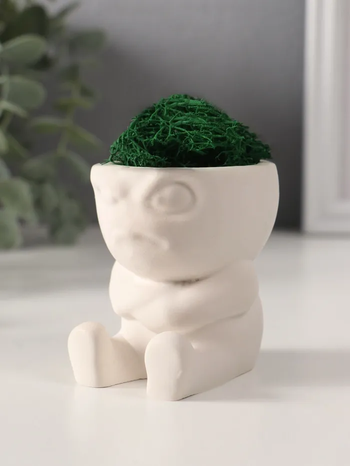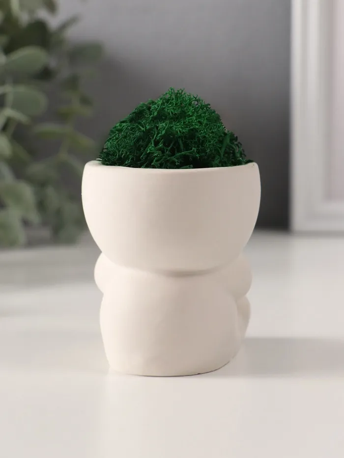 Стабилизированный мох в кашпо из бетона «Мистер Зло», 7×6×6.5 см, белый — Характеристики