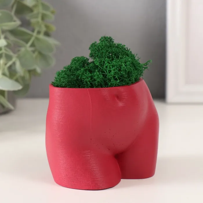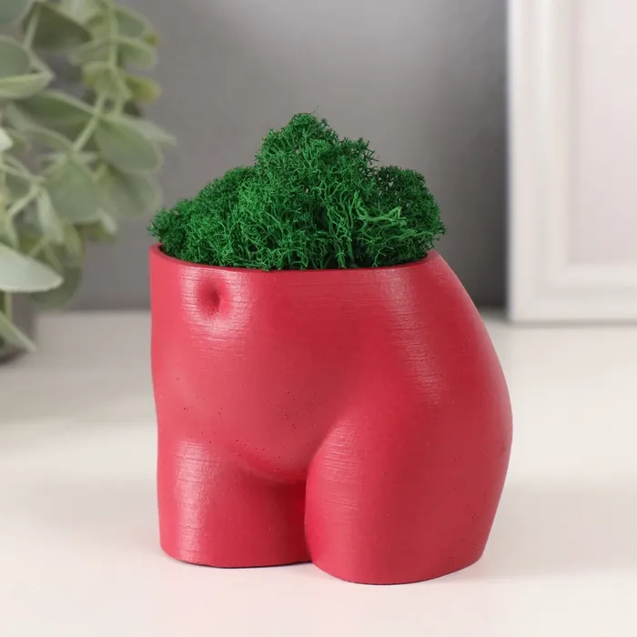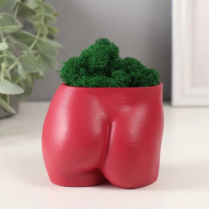 Стабилизированный мох в кашпо из бетона «Невинный вид», высота 6.5 см, ширина 8.5 см, винный — Характеристики