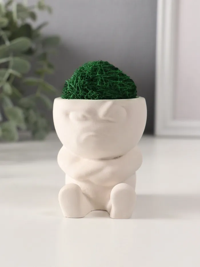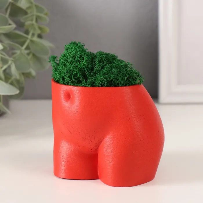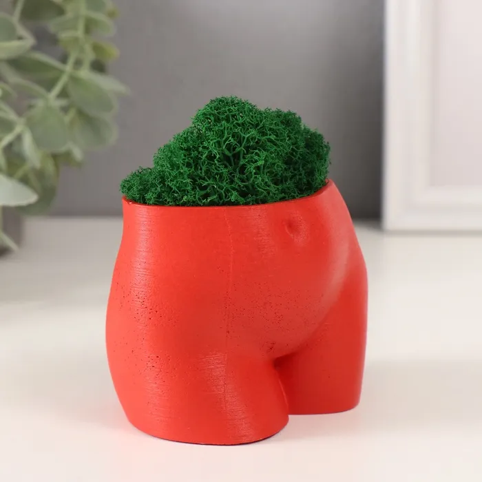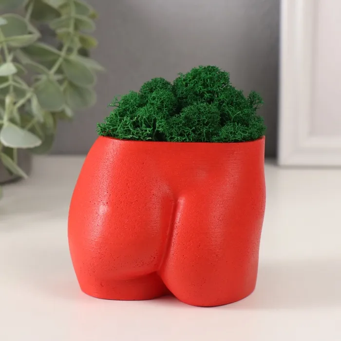 Стабилизированный мох в кашпо из бетона «Невинный вид», высота 7 см, ширина 8.5 см, красный — Характеристики