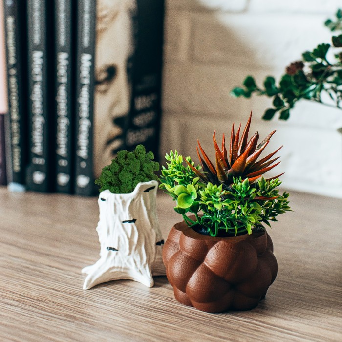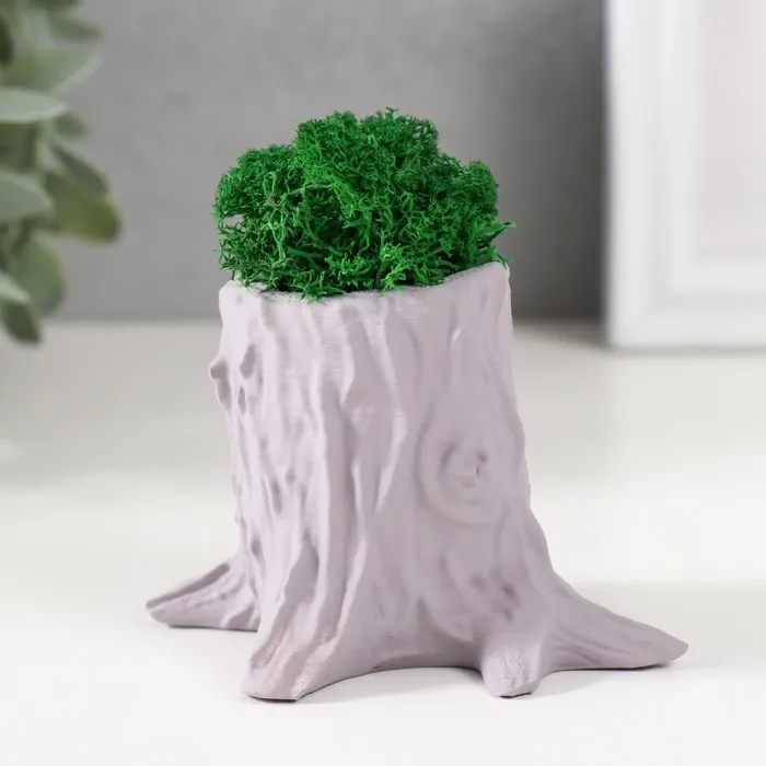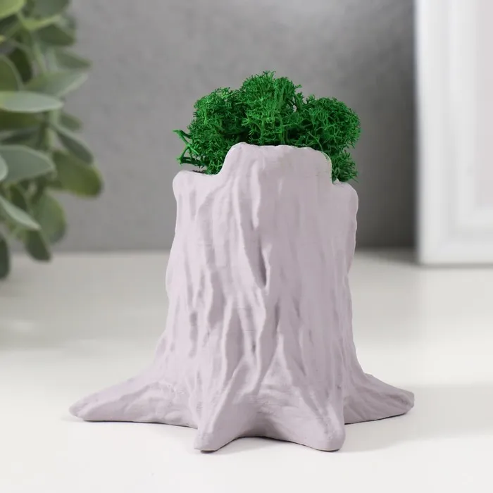 Стабилизированный мох в кашпо из бетона «Пенёк», 7.5×8.5×7 см, серый — Характеристики