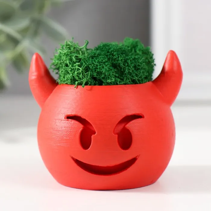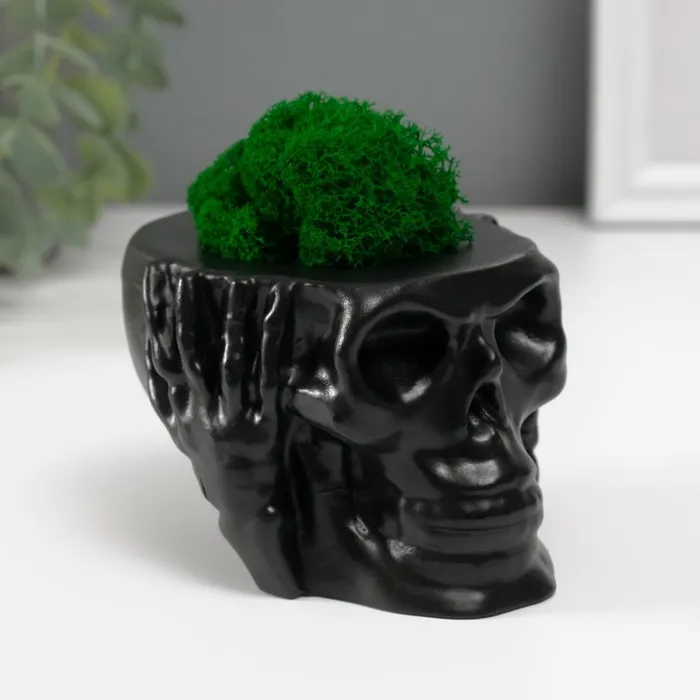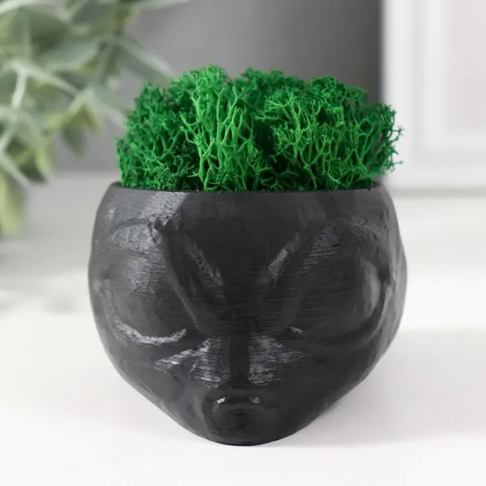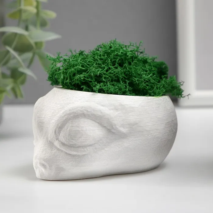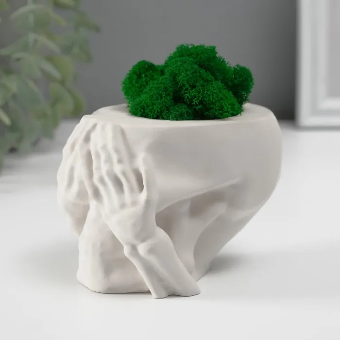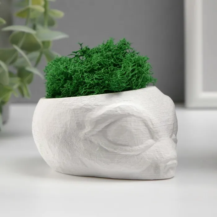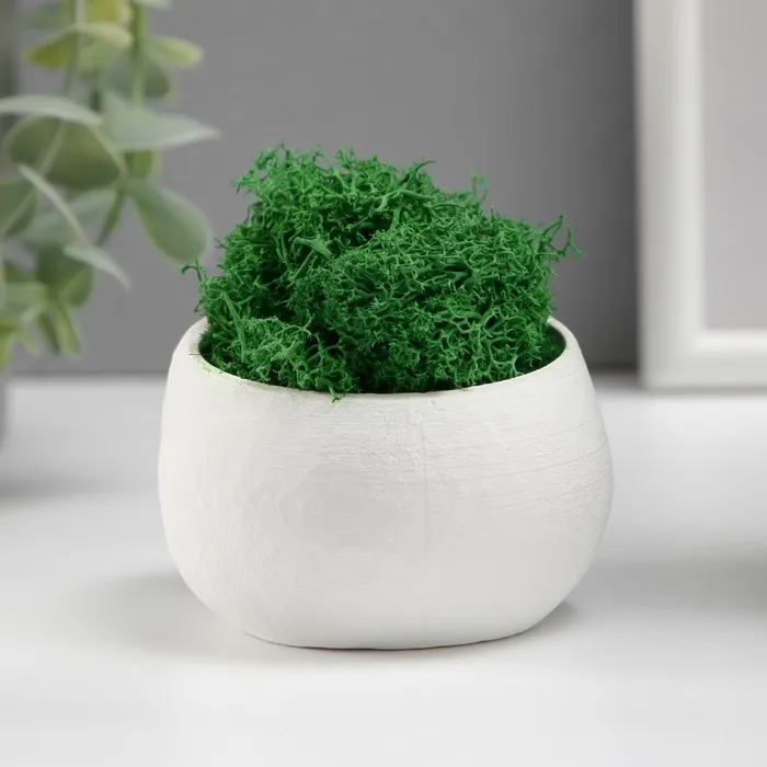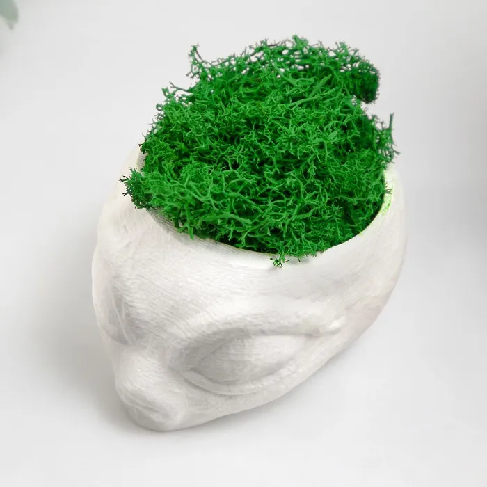 Стабилизированный мох в кашпо из бетона «Пришелец», высота 5 см, диаметр 6 см, белый — Характеристики
