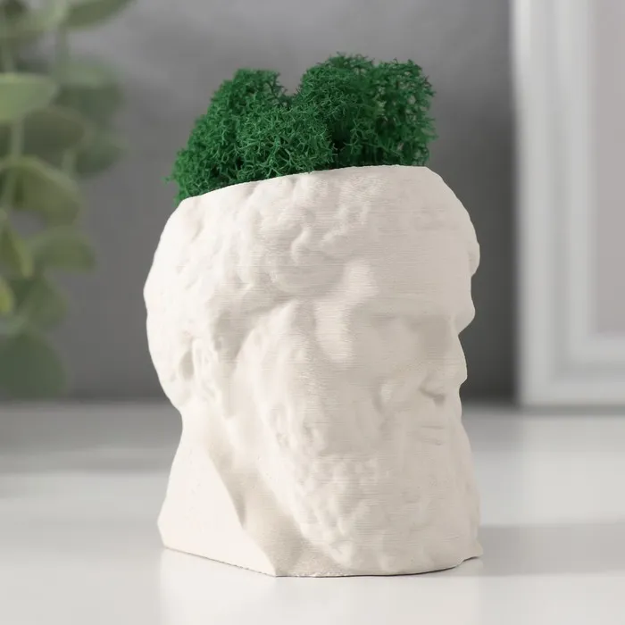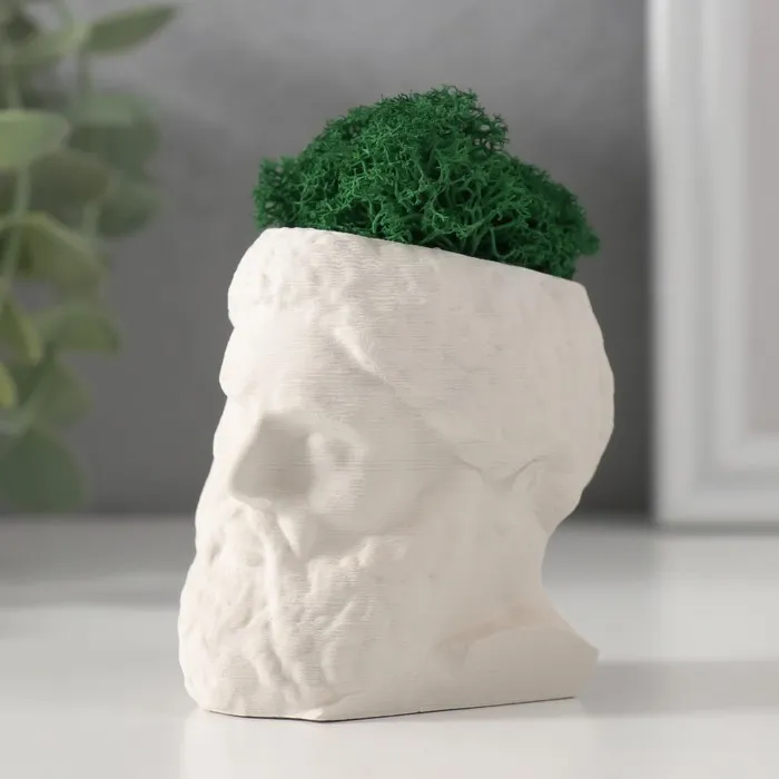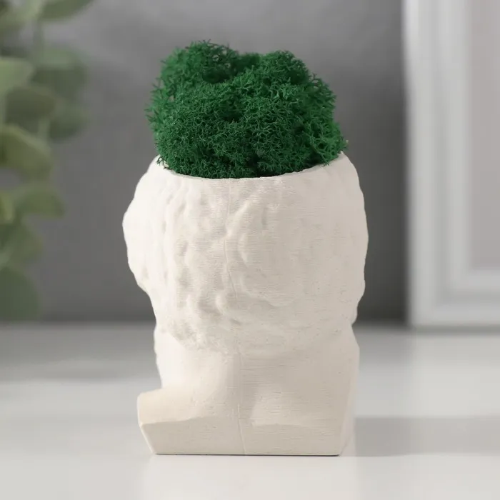 Стабилизированный мох в кашпо из бетона «Прометей», высота 6.5 см, ширина 5 см, белый — Характеристики