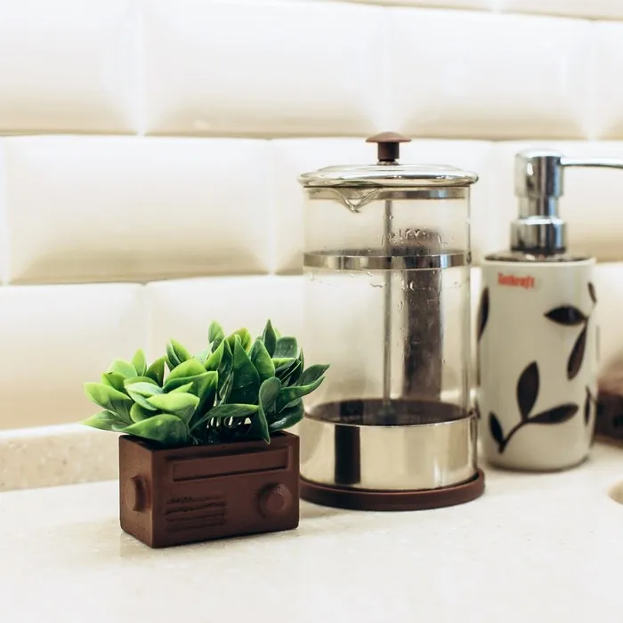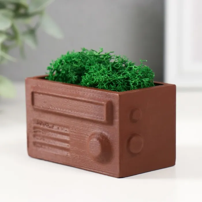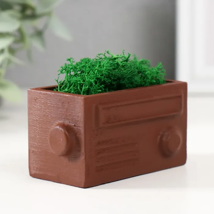 Стабилизированный мох в кашпо из бетона «Ретро радио», мини, 8×4×4.5 см, св. коричневый — Характеристики