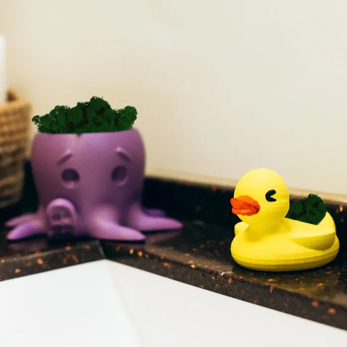 Стабилизированный мох в кашпо из бетона «Утка», 6×8×5.5 см, жёлтый — Характеристики