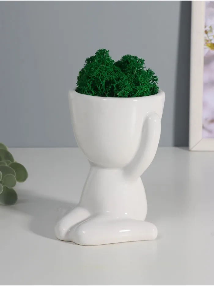 Стабилизированный мох в кашпо из керамики «Мистер Грин любитель тишины», 11.5×10×9 см, белый — Характеристики