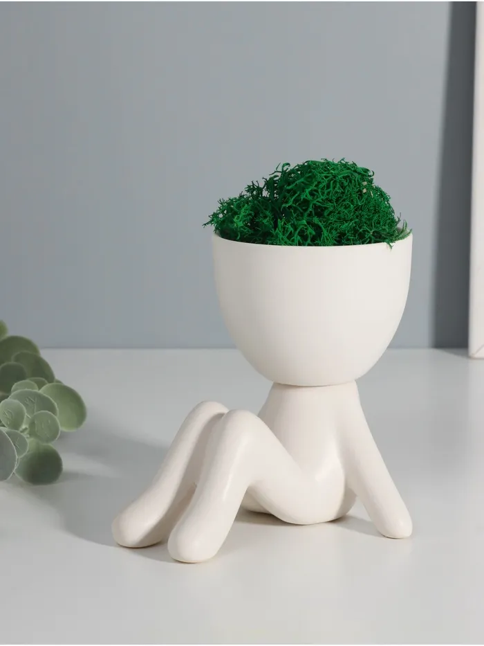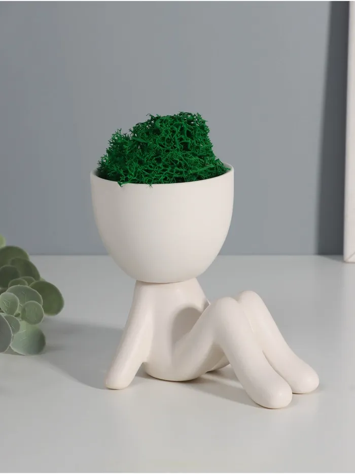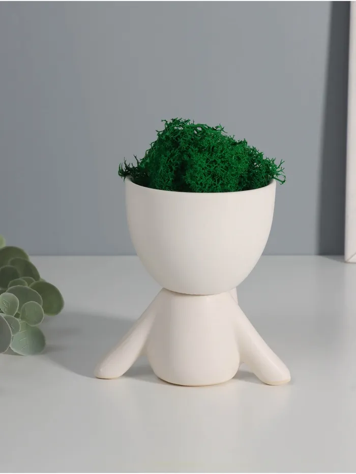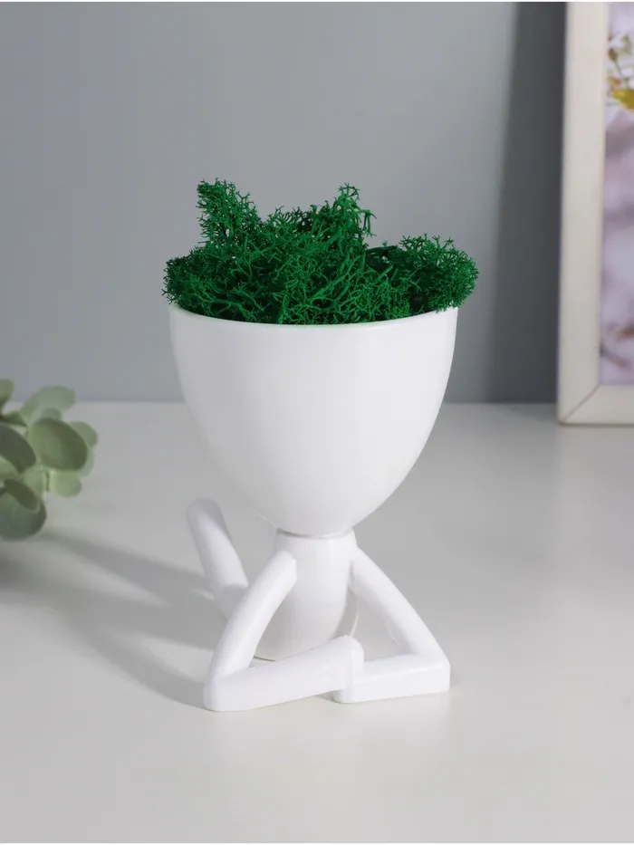 Стабилизированный мох в кашпо из керамики «Мистер Грин на чиле», 10×9.5×12 см, белый — Характеристики