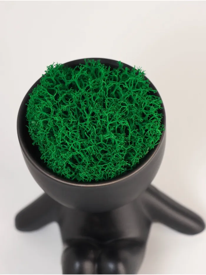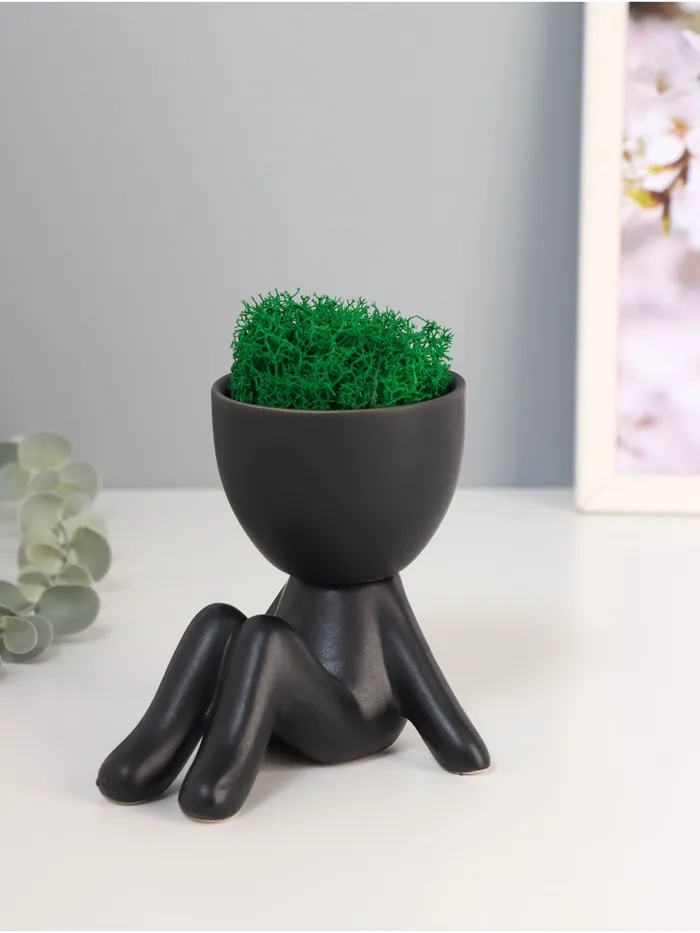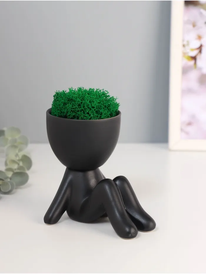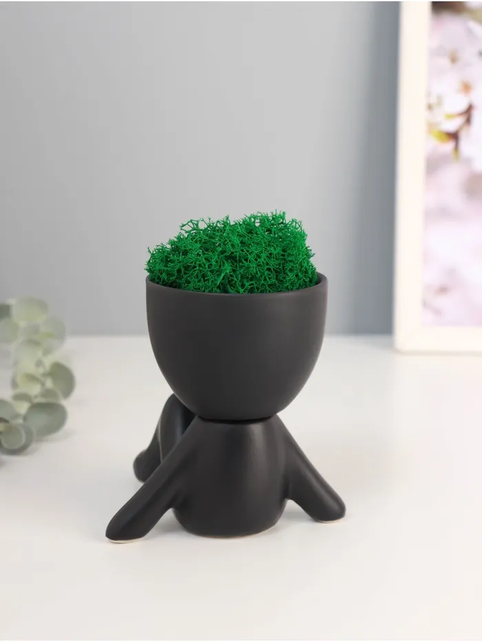 Стабилизированный мох в кашпо из керамики «Мистер Грин на чиле», 10×9.5×12 см, чёрный — Характеристики