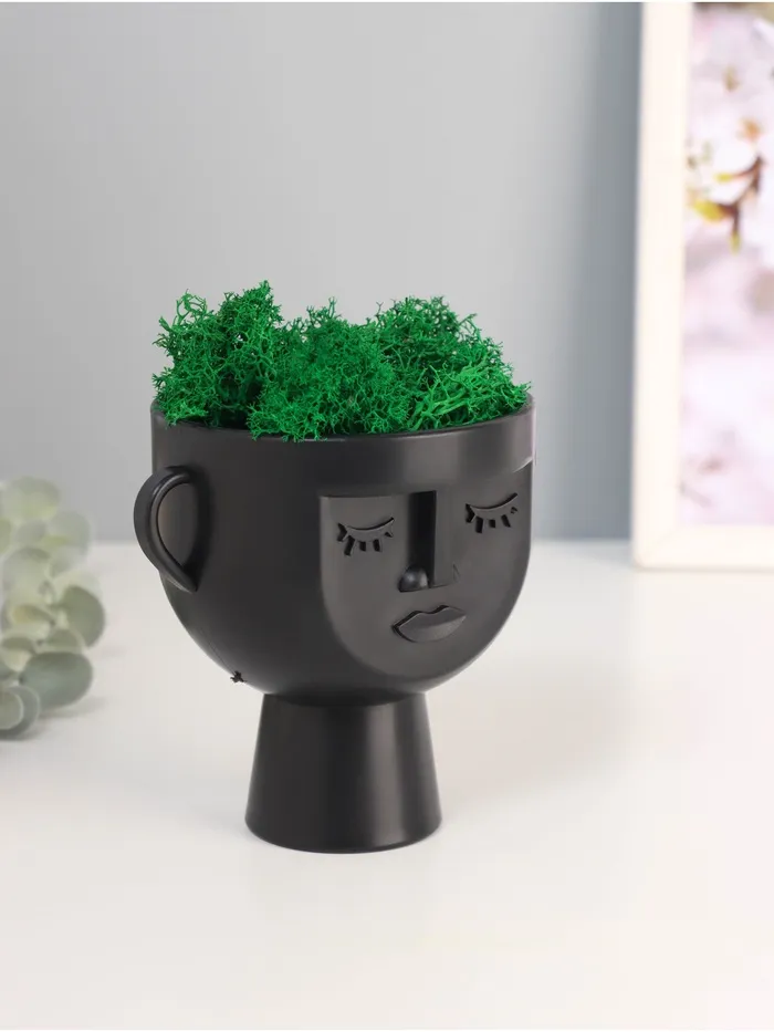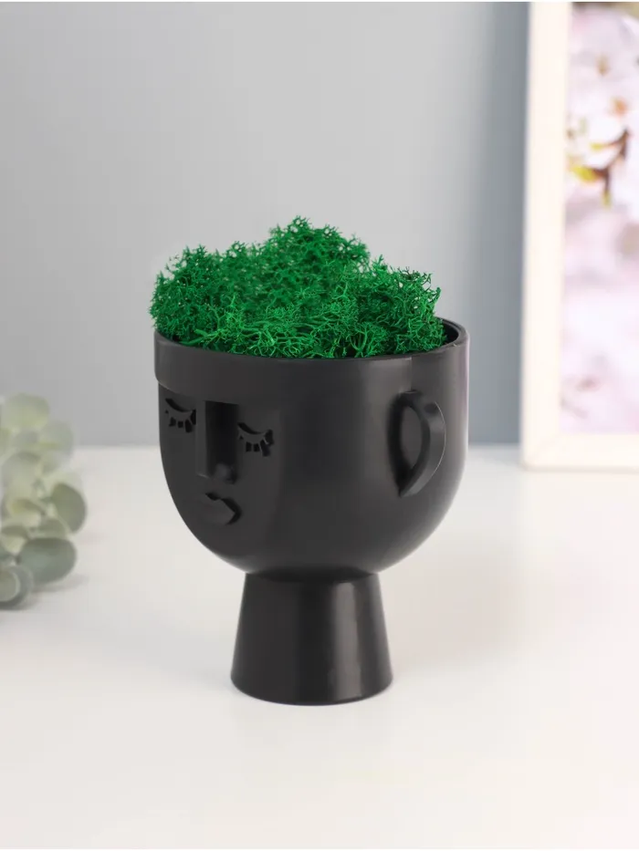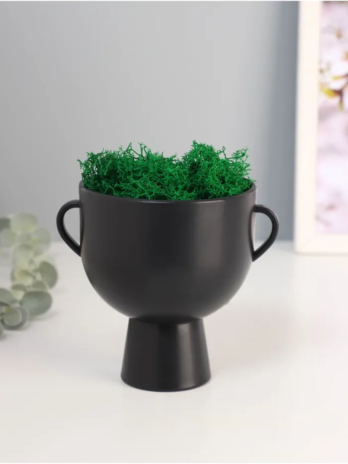 Стабилизированный мох в кашпо пластиковом «Чаша», 10.5×9×11.5 см, чёрный — Характеристики