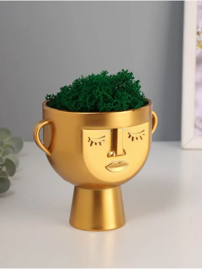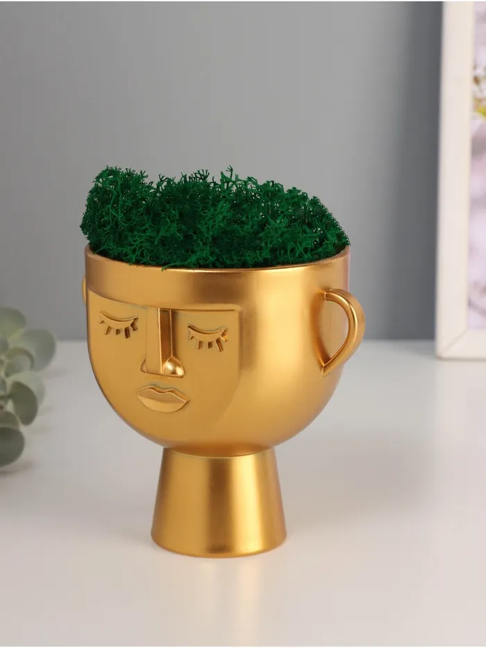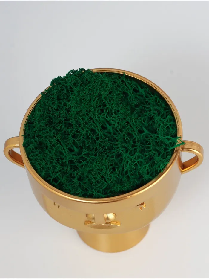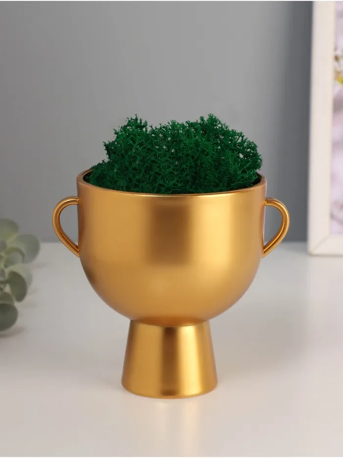 Стабилизированный мох в кашпо пластиковом «Чаша», 10.5×9×11.5 см, золото — Характеристики