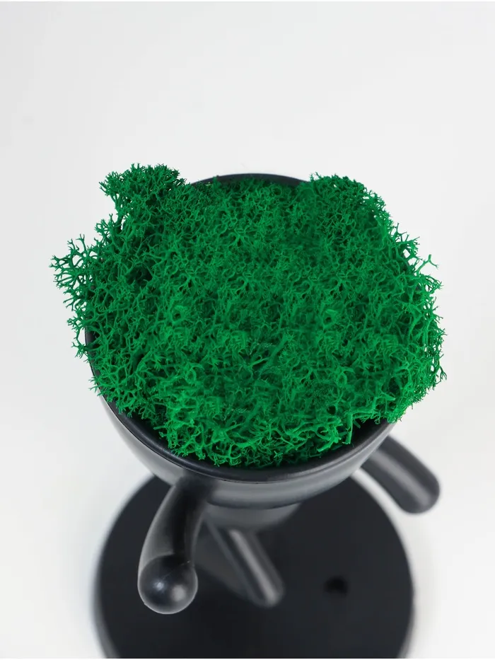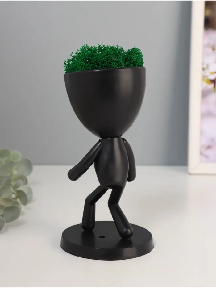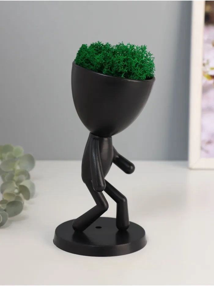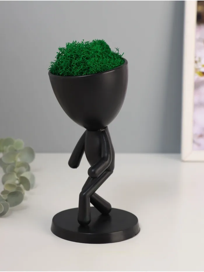 Стабилизированный мох в кашпо пластиковом «Мистер Грин бежит», 16.5×8.5×8.5 см, чёрный — Характеристики