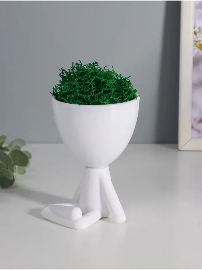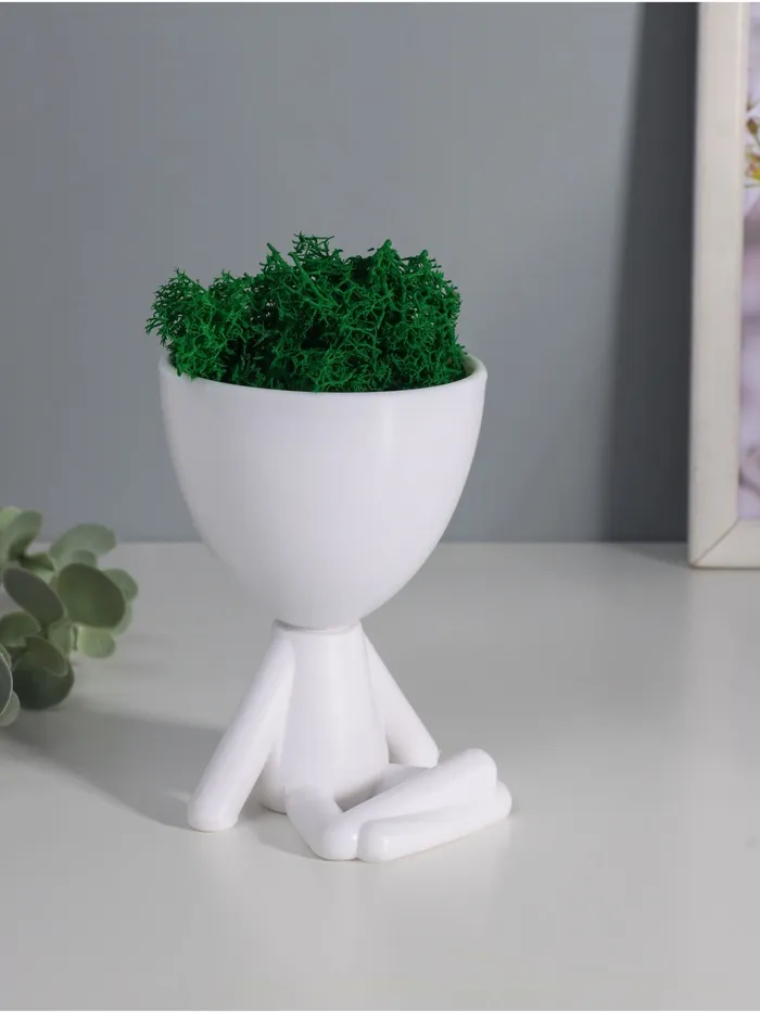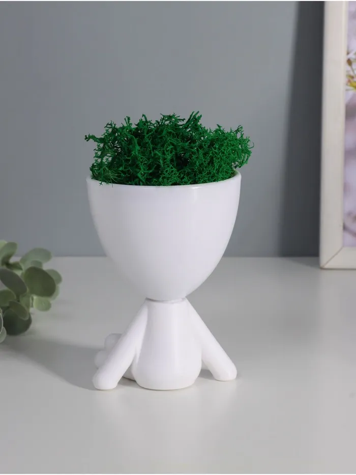 Стабилизированный мох в кашпо пластиковом «Мистер Грин йог», 10.5×7.5×7.3 см, белый — Характеристики