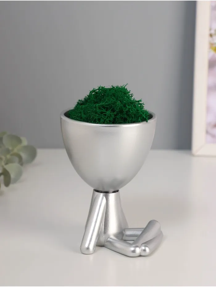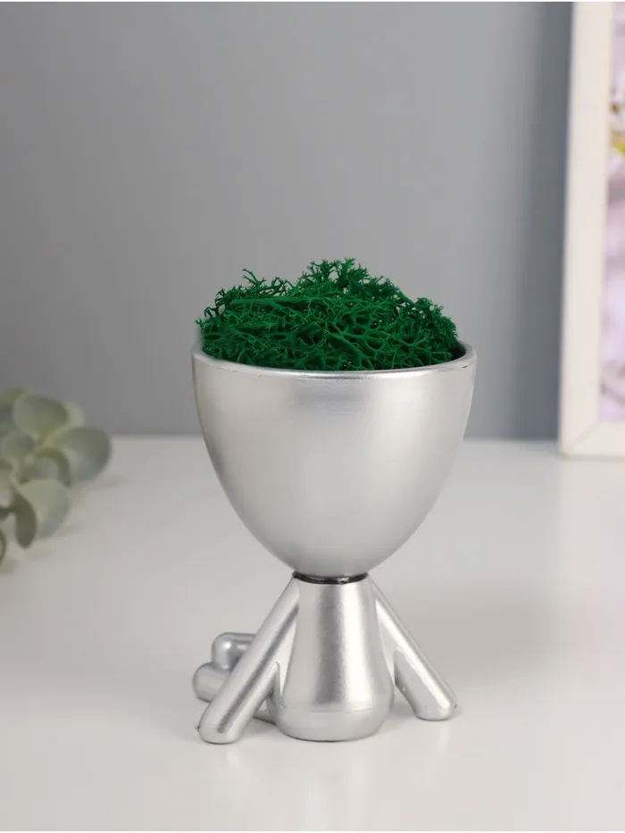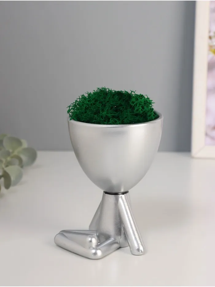 Стабилизированный мох в кашпо пластиковом «Мистер Грин йог», 10.5×7.5×7.3 см, серебро — Характеристики